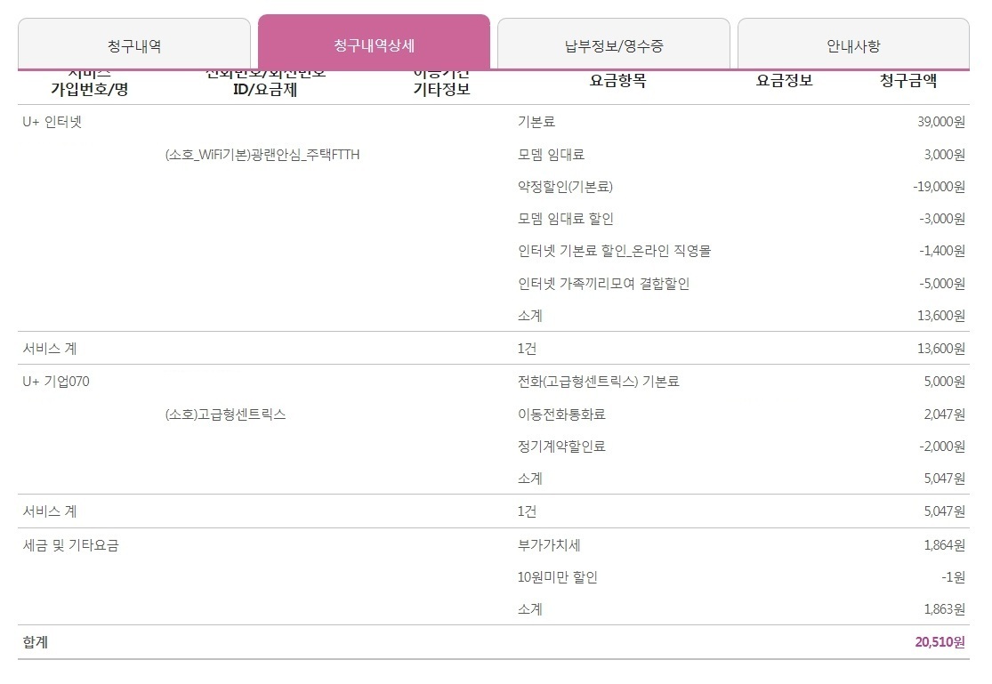 인터넷 + 휴대폰 = 결합 혜택을 잘 누리고 계시네용!!