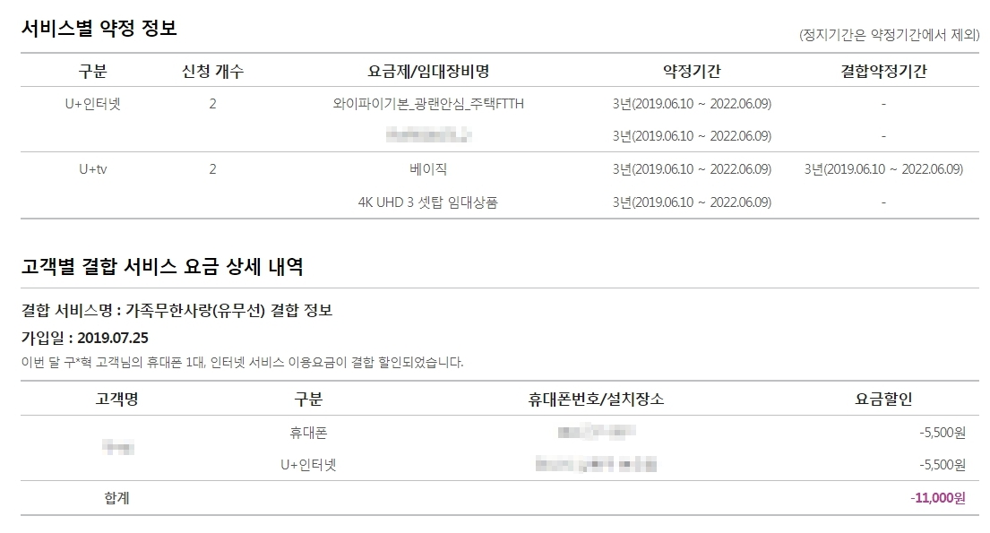 집 인터넷과 휴대폰에서 매월 총합 11,000원의 할인을