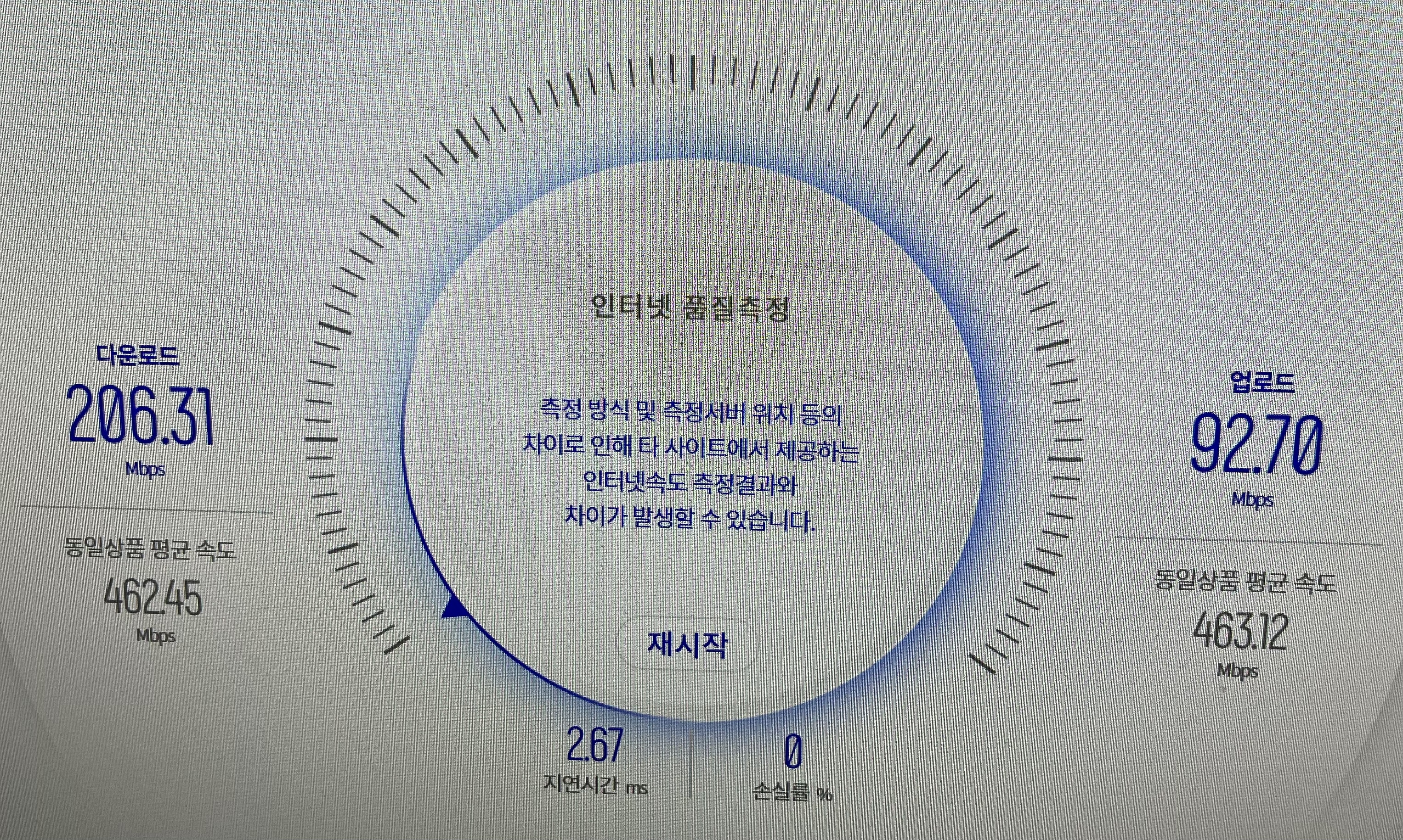 적어도 2개 이상의 인터넷 속도 측정 도구 결과값의 평균을 산출하는 것이 좋습니다.