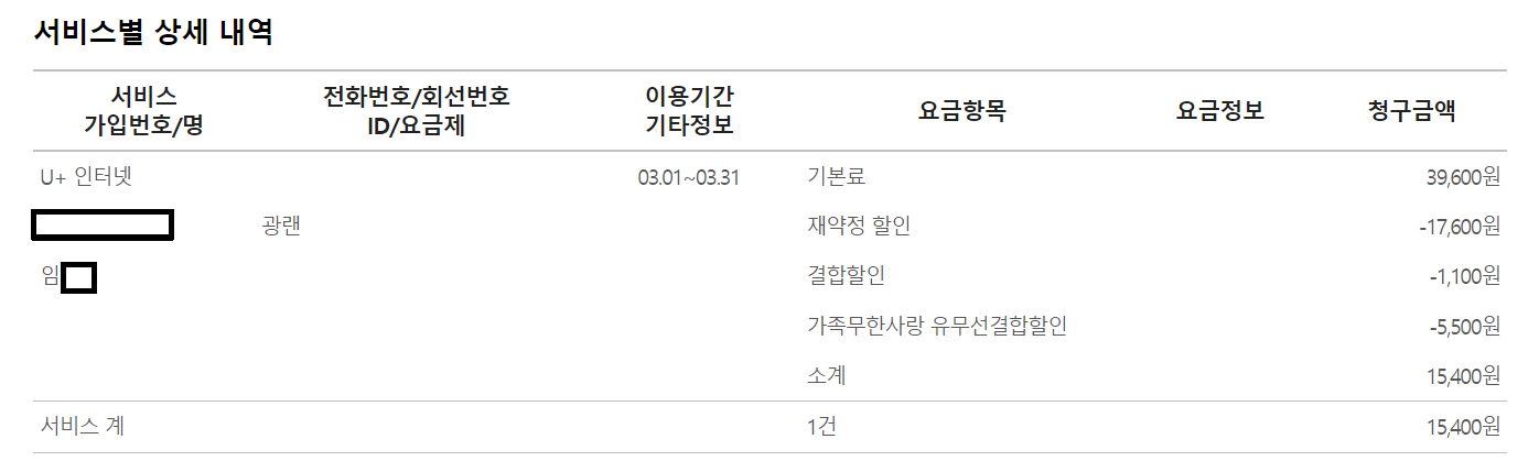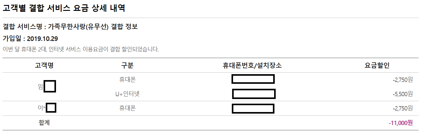 인터넷 1, TV 2, 핸드폰 2회선 해서 가족할인으로 가입하였고 추가 핸드폰 가입자 없고, 통신사도 변경 할 예정은 없습니다.