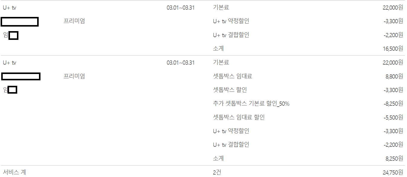 장비 사용 여부와 어떻게 설치될지에 따라 기본료가 1,100원 vs 7,700원이 됩니다.