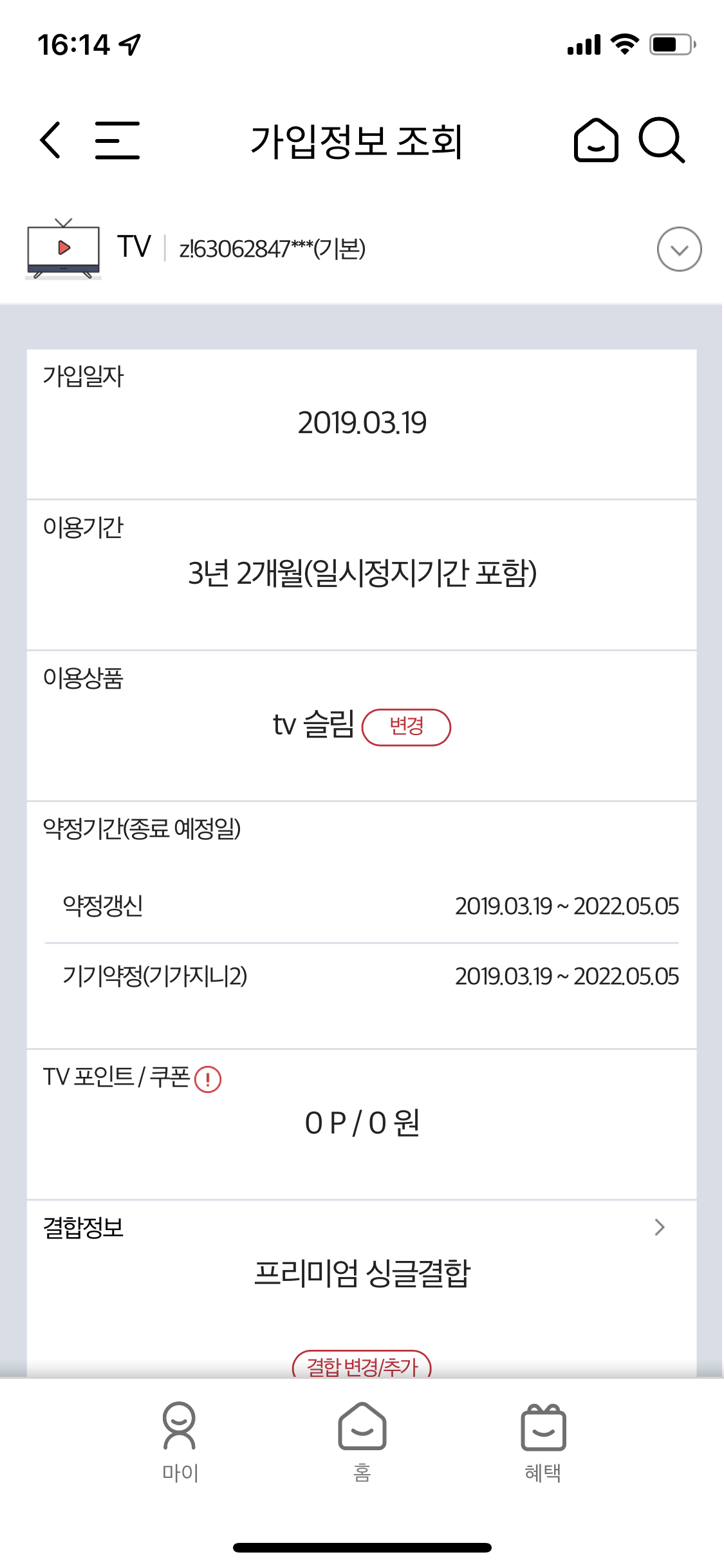 2022.05.05 부로 인터넷 + 티비 약정이 만료되어