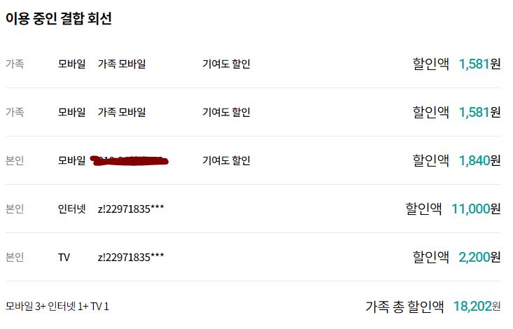 인터넷은 5,500원(장기고객 1기가 전환 할인), TV는 총 4,400원 할인으로