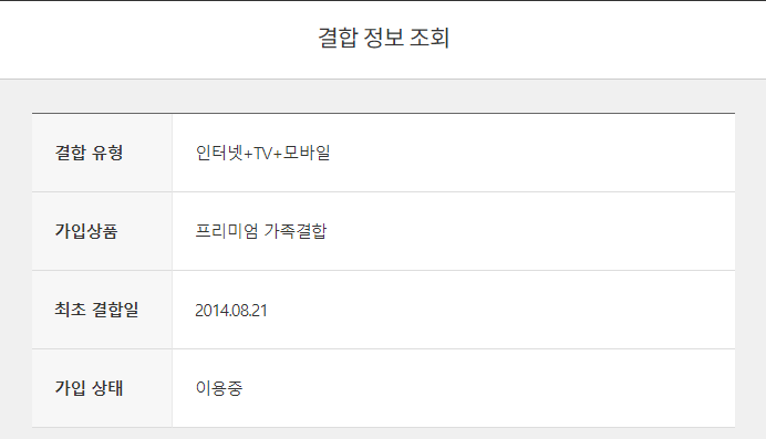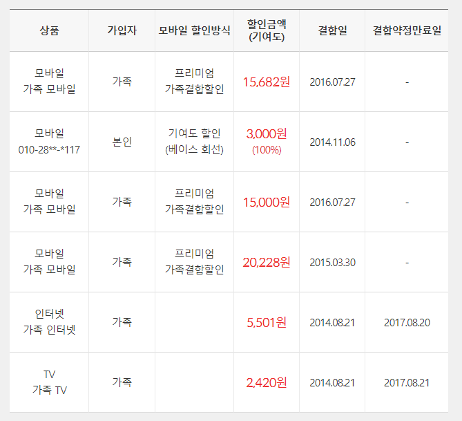 1. 결합은 프리미엄 가족결합할인을 사용중입니다