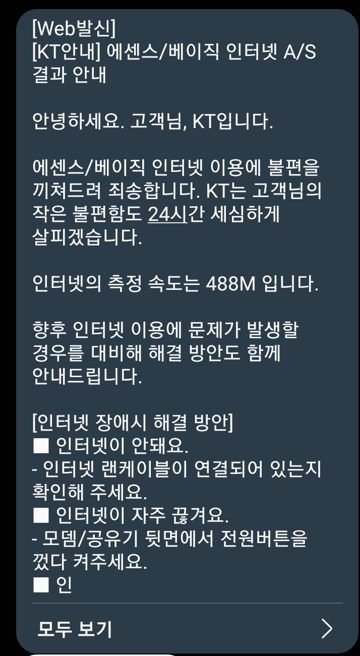 하여 KT고객센터로 전화하시거나 방문하셨던 기사님께 연락하셔서