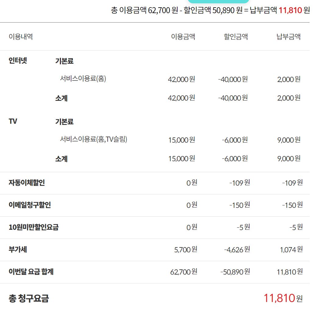 한데.. KT 요금을 아주 저렴하게 이용 중이시네요 ㄷㄷ