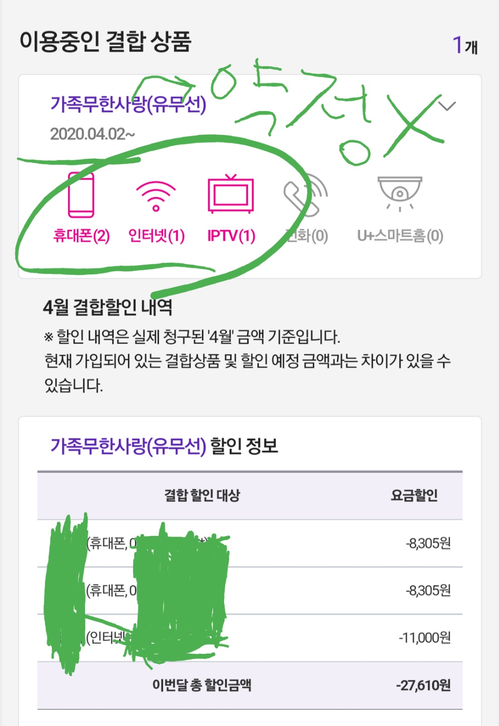 20년 4월쯤 휴대폰을 결합해 요금 할인을 받고 계시다는 뜻일까요?