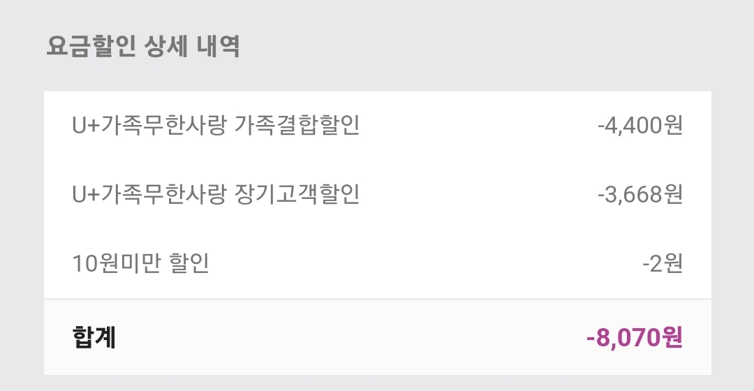 남편은 통신사가 SK이고 시어머님, 아주버님이랑 묶여있고