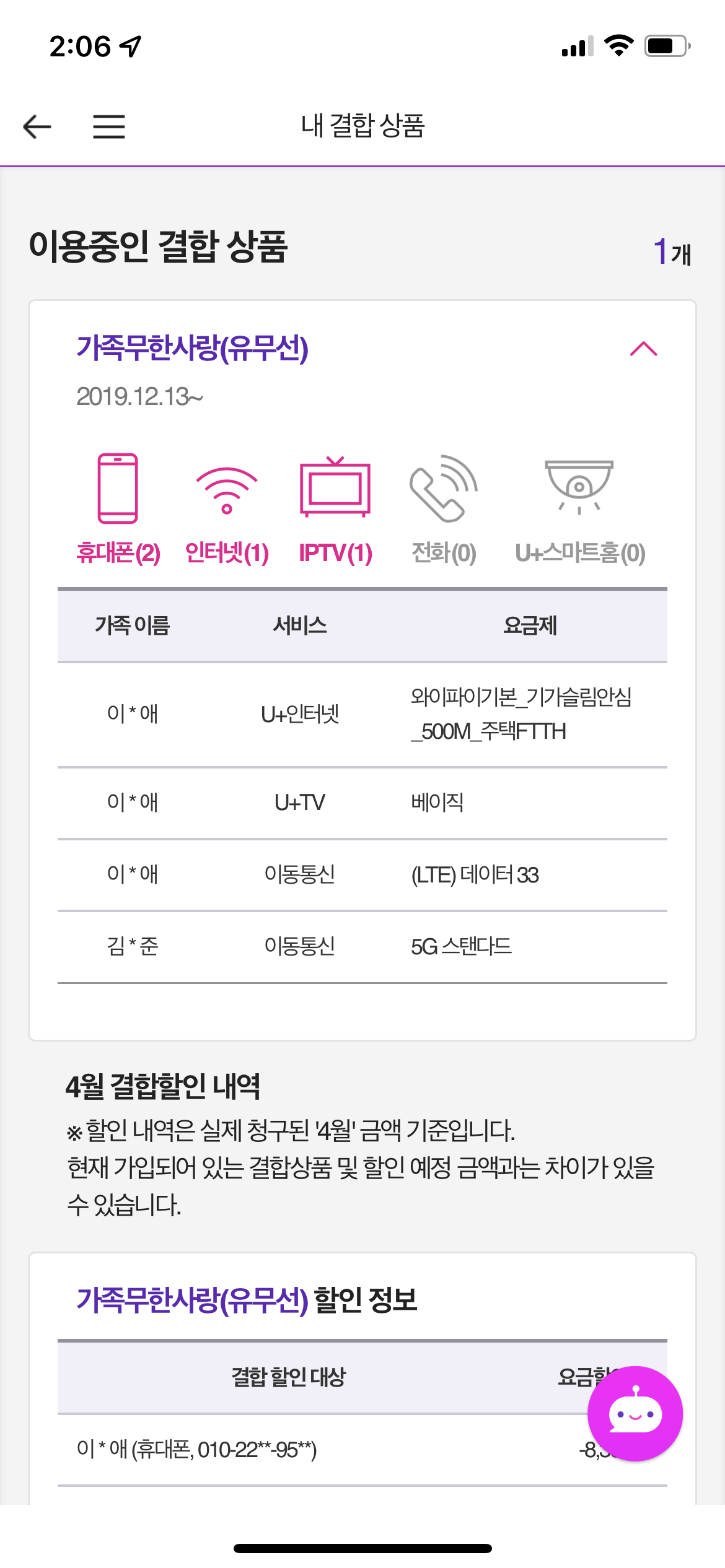 가족분께서 따로 이용중이신 LG인터넷이 있고 + 여기에 LG폰(들)도 결합중!이라는 뜻이겠지요~?!