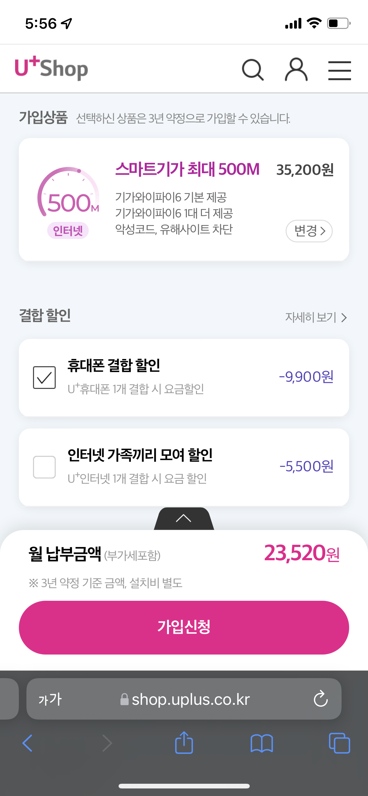 이번 신규 LG인터넷을 결합하셔야 하거든요~!>.<
