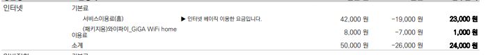 + 공유기 요금 1,100원 + Wings 1,650원 => 24,750원이 되지요.