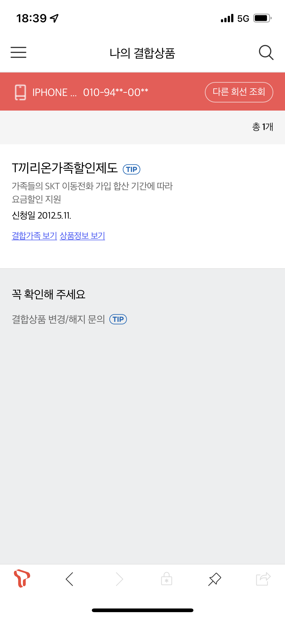 집3의 핸드폰 1회선은 다른 인터넷과 결합이 안된 상태일까요~?