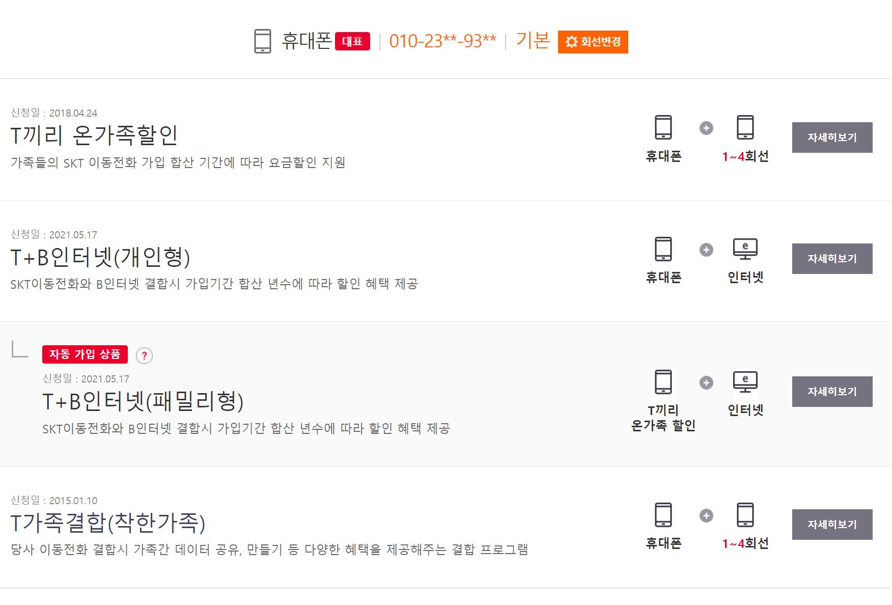 집에서 SK인터넷 사용하고 있고, 휴대폰 4회선 모두 결합 중입니다.