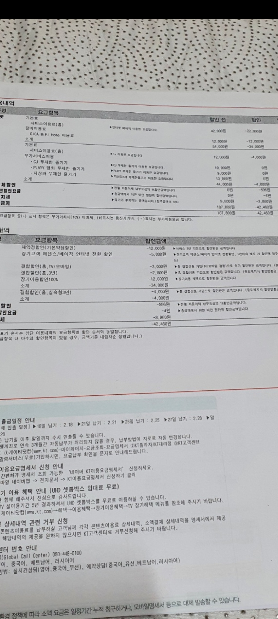 폰(lte 데이터온 비디오)+kt인터넷,티비(제명의)+부모님,동생 폰 결합입니다