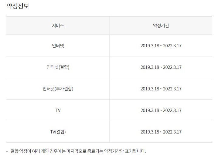 2019년 3월 18일 KT 인터넷(500M) + TV(슬림) 서비스를 가입해서 사용중이고, 2022년 3월 17일에 3년 약정이 만료되었습니다.