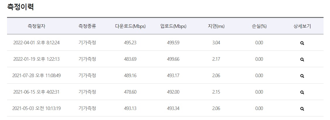 반대로 LG는 대칭망(FTTH)으로 지원되며 100메가, 500메가, 1기가를 설치할 수 있구요~