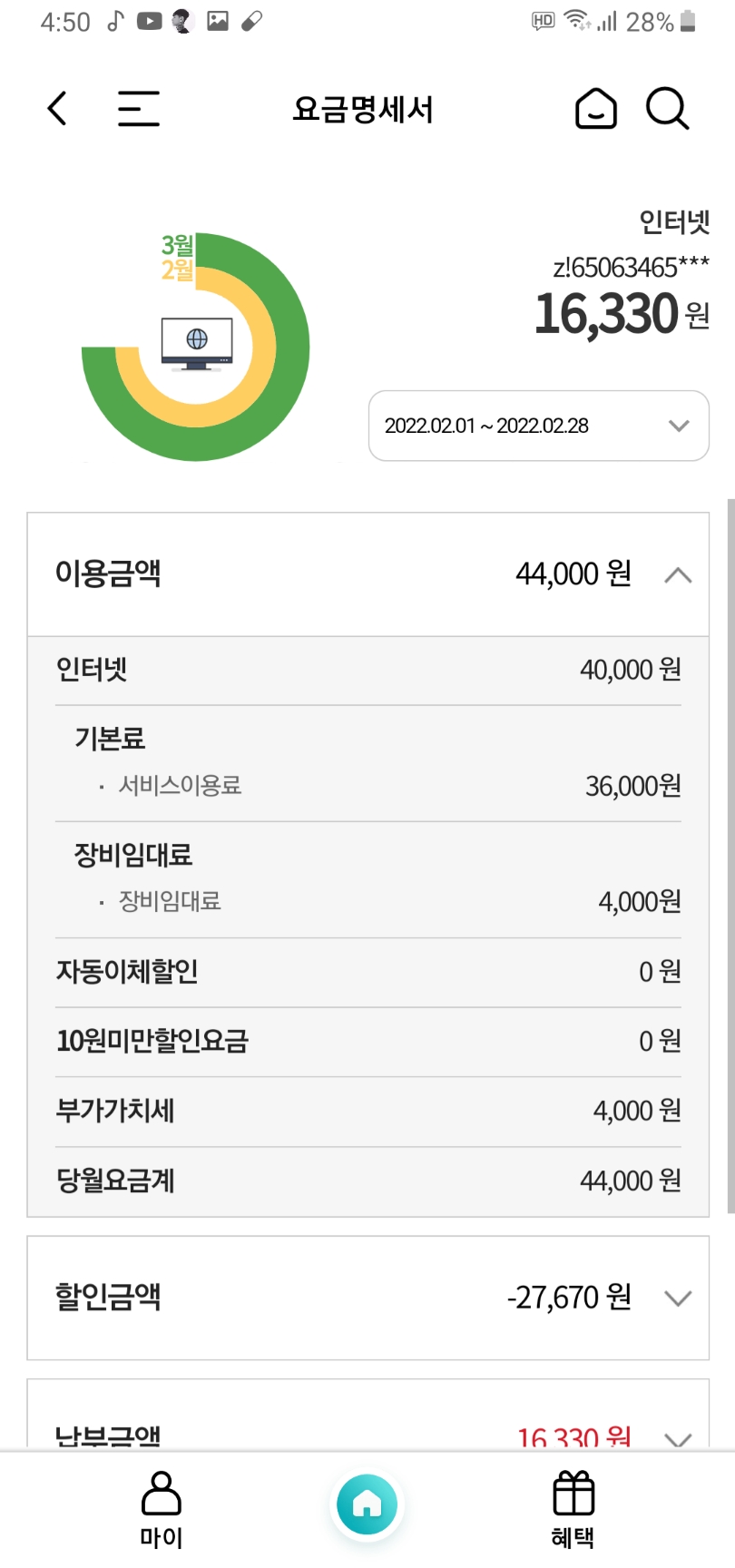 요금 할인이 적용되어 있지 않으면 어쩌나! 하고 살짝 걱정했거든요ㅎㅎ