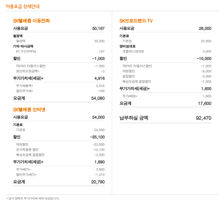 인터넷과 핸드폰 요금에서 각각 할인이 들어간답니다 :)
