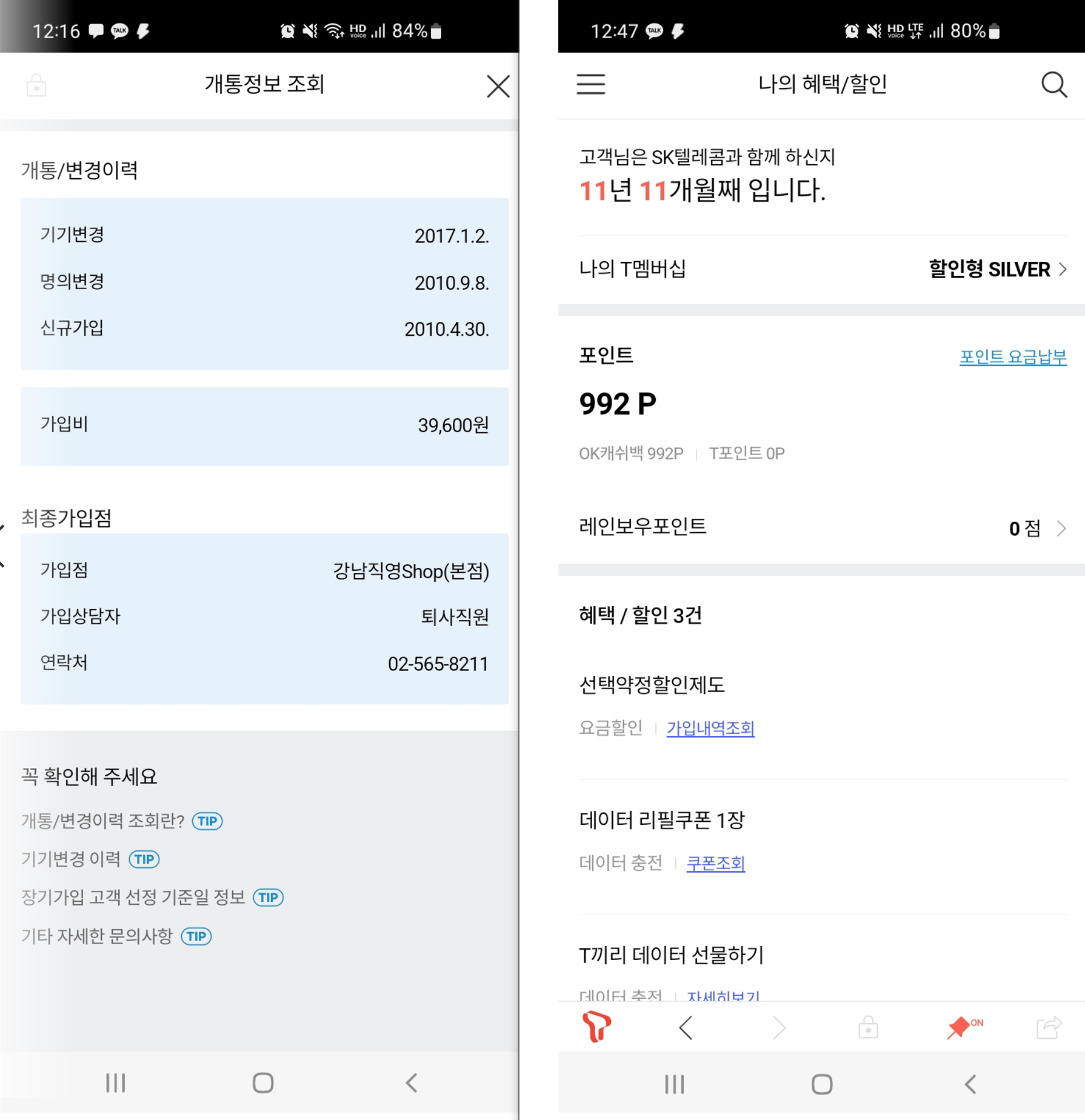 추가적으로 어제 대리점가서 직접 가입연수를 확인해봤어요!
