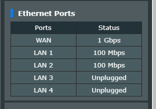 공유기 설정에 들어가보니 셋톱박스, 유플러스 기가 GW 둘다 100mb로 연결되어 있는 것으로 확인이 되었습니다.