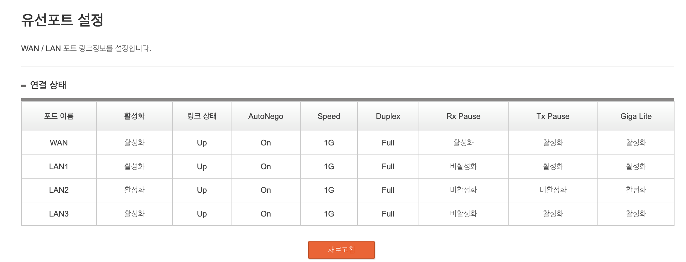유선 QoS는 업로드 다운로드 모두 거실은 100Mbps