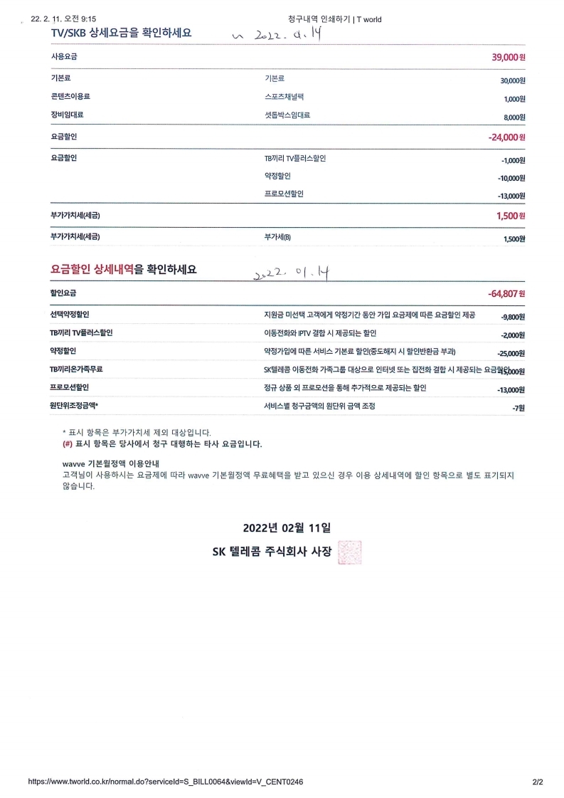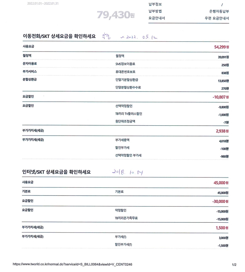 남겨주신 요금안내서를 미루어볼 때