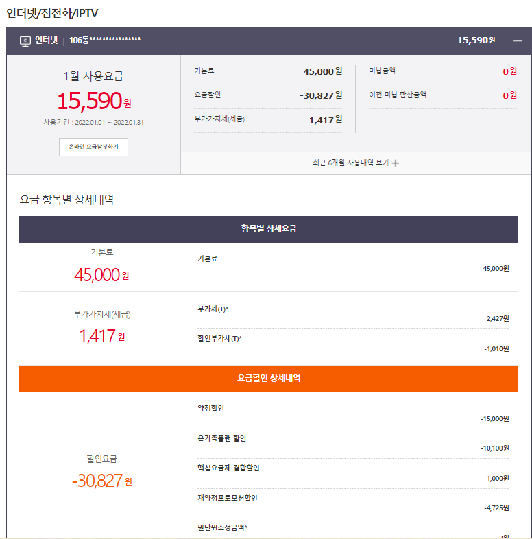 알아보니까 약정할인이 적게 들어가고 있는 것 같다고 하더라구요