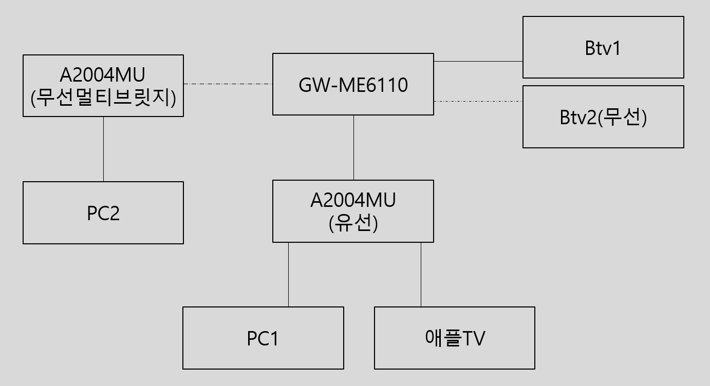 구조는 사진과 같습니다. 점선은 무선연결을 표현한 것입니다.