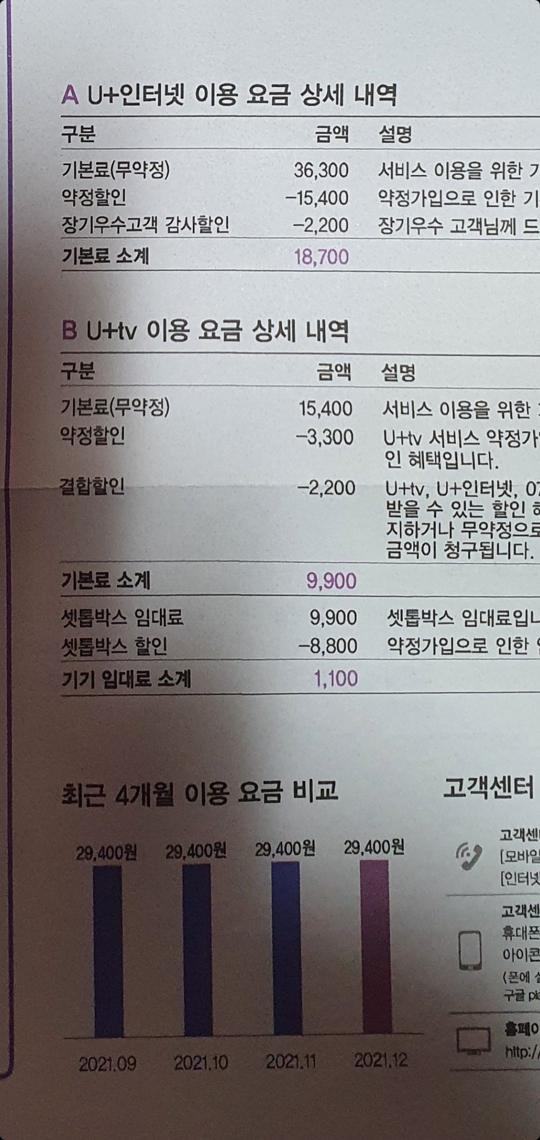 LG 요금(28,300원)과 비교하면 매월 9,100원이 인상되는 것이고요~!