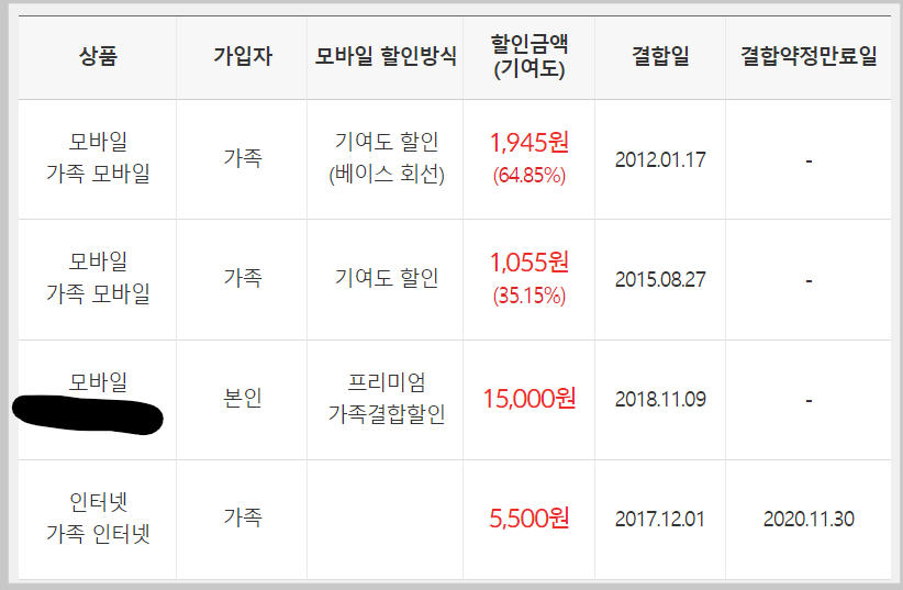 현재 <가족무한사랑 (유무선)> 결합 덕분에,