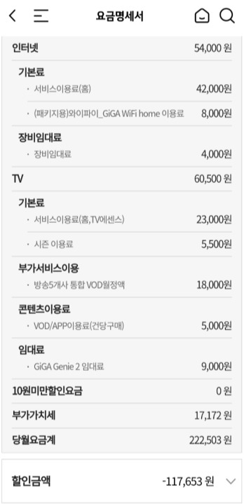 핸드폰3대 인터넷 1회선 TV 1개 쓰고 있습니다