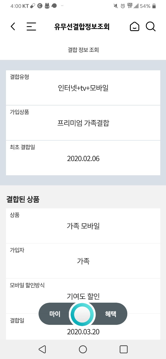 위와 같이 KT의 <프리미엄 가족결합>혜택을 받지 못하고!