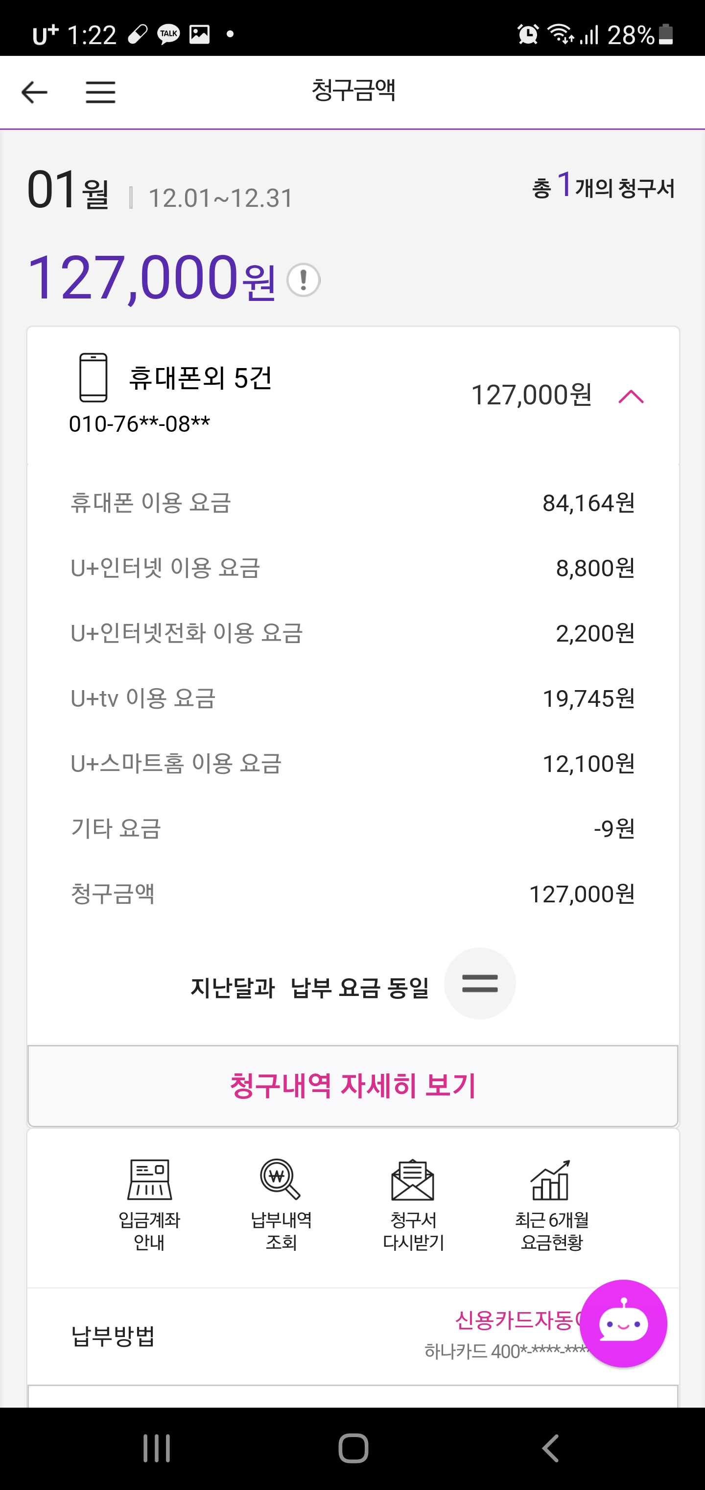 3) 휴대폰 : LG폰 1회선(?) 이용중~!