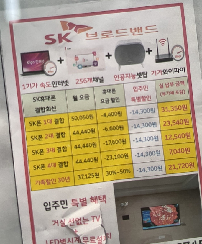 SK 1기가급 인터넷 + 공유기 임대 + 상위 IPTV 1대