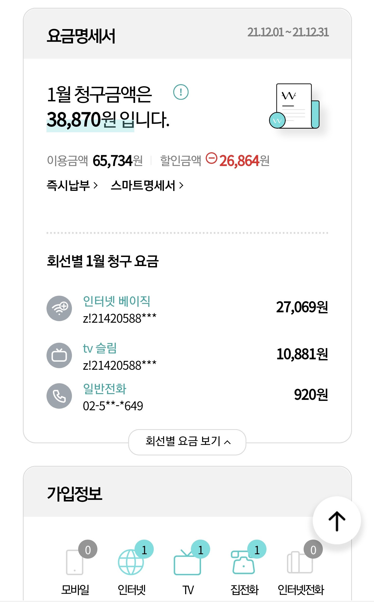인터넷과 TV는 KT로 사용하고 계시네요!