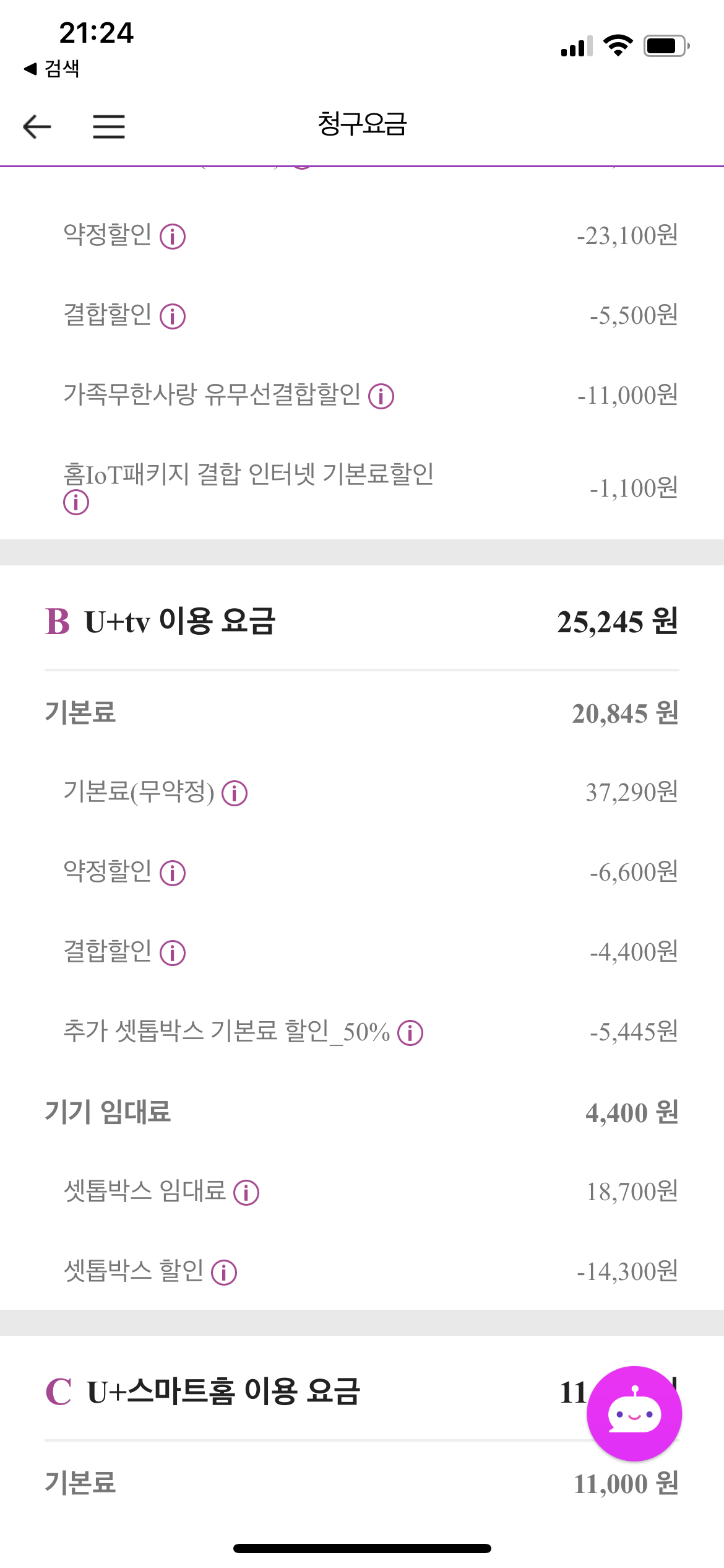 폰결합으로 인해서 LG인터넷에서 매월 11,000원을