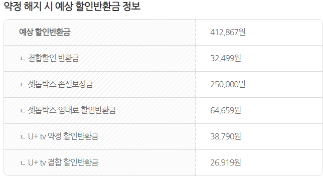 그럼 TV와 IoT 해지시 납부하는 실제 위약금은 414,375원이 되지요.