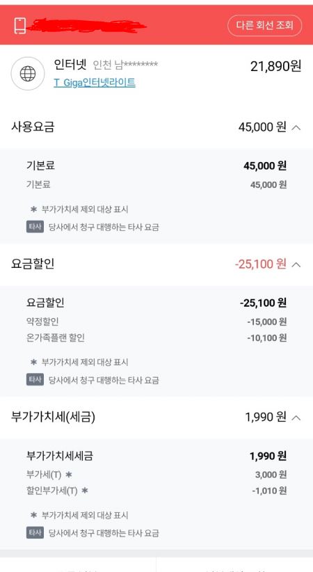 추가로 가족쪽의 인터넷청구서도 참고용으로 올립니다.