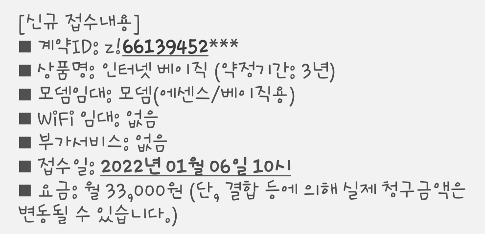 전화상담으로 500메가 상품 신청했고 통신사에서 안내문자 받았습니다.