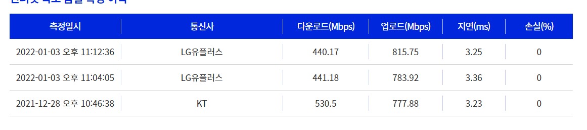 3. 그리고 통신사 홈페이지 상에도 최저보장속도 측정결과값을 남겨두는 게