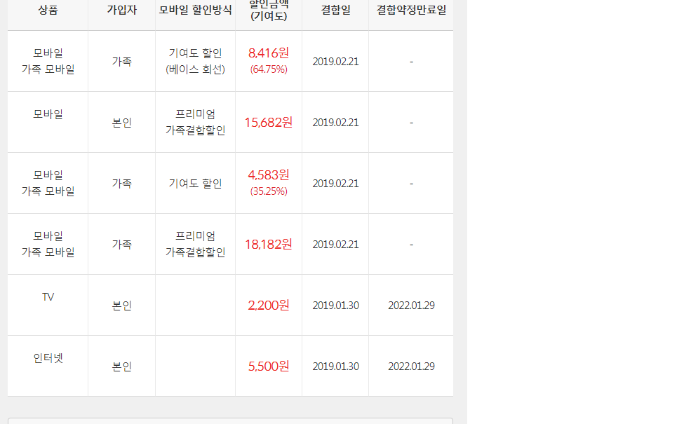 혹여나 다른 결합상품을 사용 중이시면 할인 요금이 또 달라질 수 있어서