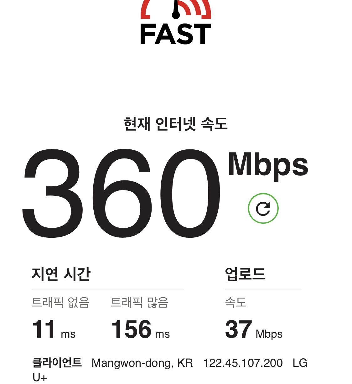 현재 LG 인터넷 wifi기본_기가슬림안심500M_ 주택HFC 사용하고 있는데 속도측정을 하면