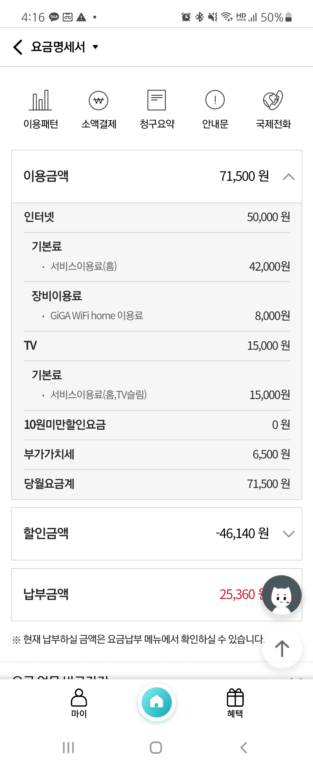 얼마 전 부터 알뜰폰 결합을 시작하였는데,