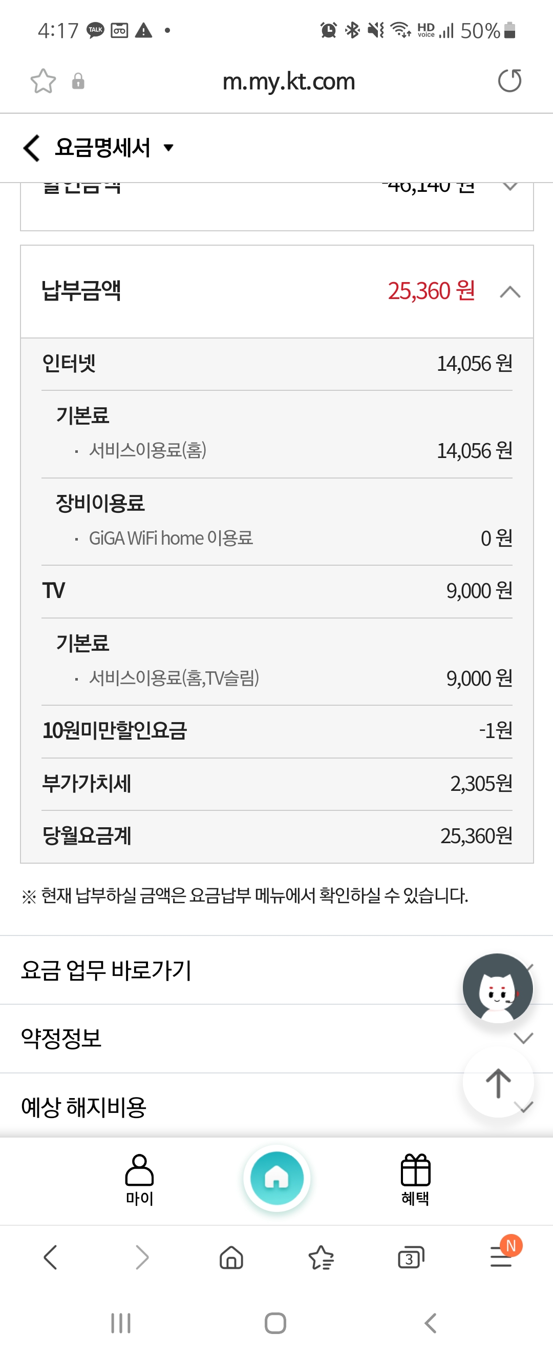 기존에 사용하시던 KT 인터넷과 IPTV 약정이 만료되었군요~!