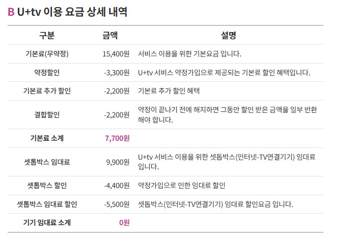 본사에서 UHD4 셋톱박스의 경우 임대료 할인을 해주지 않는데