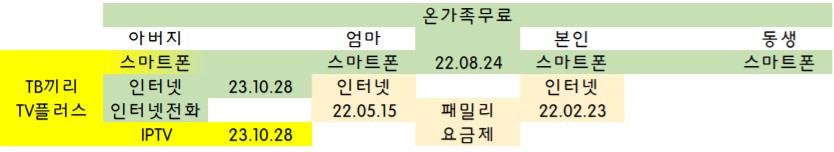 스마트폰(4인) + 인터넷(아버지) = TB끼리 온가족무료