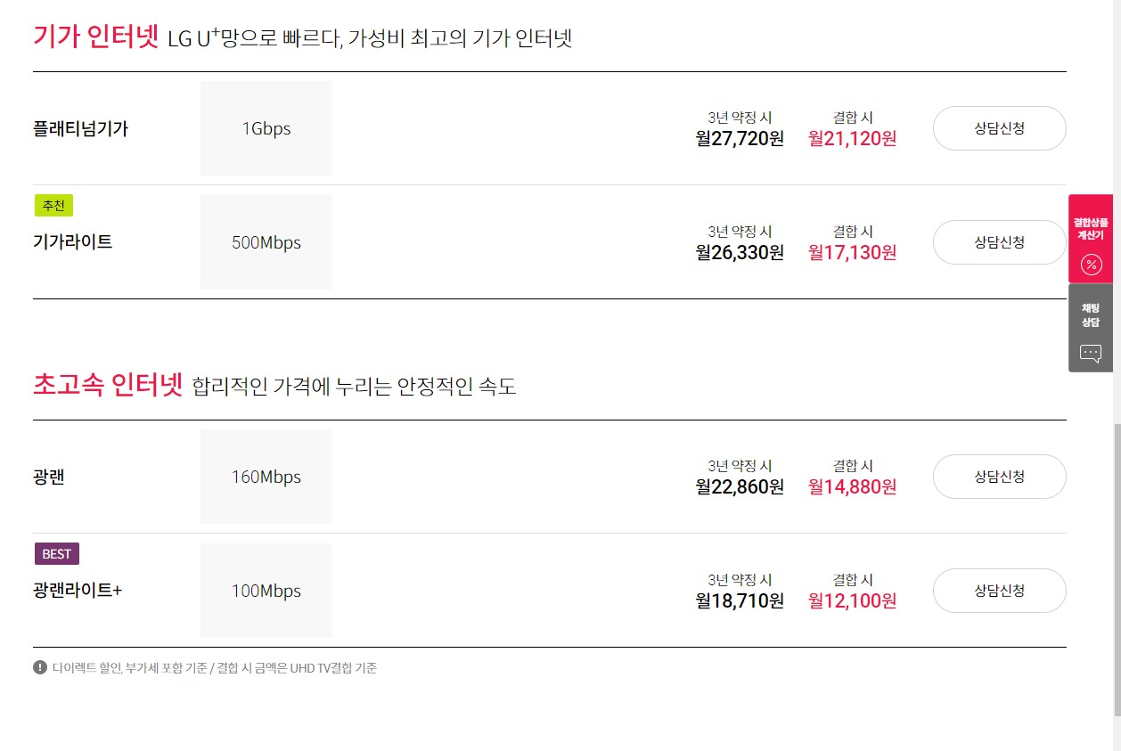 때문에 "광랜" 요금제를 택하시는 게 옳습니다.