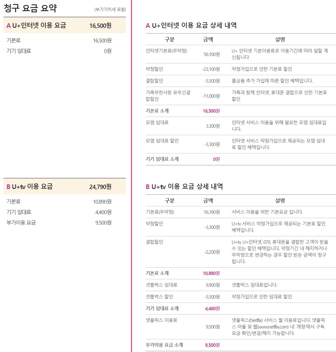 현재 U+ 에서 인터넷, tv, 휴대폰 2대 결합하여 사용중이고,