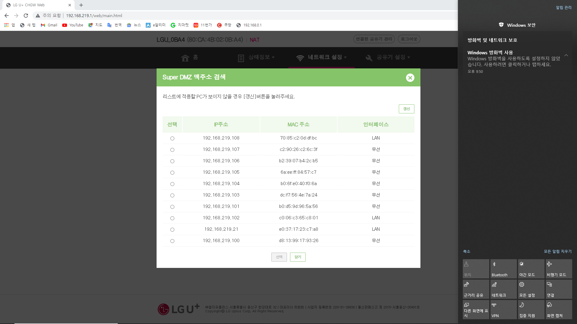 그럼 이제 LG공유기 설정에서 S-DMZ 만 잡아주시면 되는데
