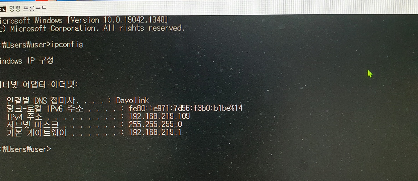 1, 컴퓨터로 [시작] - [CMD] - ipconfig 입력하시고요